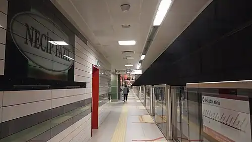 Necip Fazıl is an underground station on the M5 line of the Istanbul Metro in Ümraniye.[2] The station is located on Alemdağ Street in the Necip Fazıl neighborhood of Ümraniye. Connection to IETT city buses is available at street level.