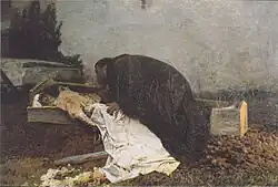 In the ancient world, sailors returning corpses to their home country were often accused of necrophilia.[5] Singular accounts of necrophilia in history are sporadic, though written records suggest the practice was present within Ancient Egypt. Herodotus writes in The Histories that, to discourage intercourse with a corpse, ancient Egyptians left deceased beautiful women to decay for "three or four days" before giving them to the embalmers.[6][7][8] Herodotus also alluded to suggestions that the Greek tyrant Periander had defiled the corpse of his wife, employing a metaphor: "Periander baked his bread in a cold oven."[9] Acts of necrophilia are depicted on ceramics from the Moche culture, which reigned in northern Peru from the first to eighth-century CE.[10] A common theme in these artifacts is the masturbation of a male skeleton by a living woman.[11] Hittite law from the 16th century BC through to the 13th century BC explicitly permitted sex with the dead.[12] In what is now Northeast China, the ethnic Xianbei emperor Murong Xi (385–407) of the Later Yan state had intercourse with the corpse of his beloved empress Fu Xunying after the latter was already cold and put into the coffin.[13]