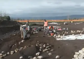 The site revealed 88 pit tombs and two large burial mounds, dating from the late Iron Age to the 7th-8th century Orientalizing period. The excavation yielded weapons, pottery, amber jewellery, and bronze items, which provided information on the local population's social structure and Mediterranean influences. The discovery has led to interpretations of the site's potential role in trade and cultural exchange.[12] Despite agricultural activity obscuring many structures, surrounding tombs have yielded well-preserved artefacts, including metal objects, intricate ceramics, and other offerings meant for the deceased's journey to the afterlife.[10] Following the initial findings, comprehensive excavations were launched to assess the integrity of the archaeological stratigraphy and evaluate the preservation of cultural deposits within their context.