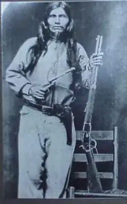 In October 1892, Marshal Yoes sent a posse of six deputies to Christie's known location. This group withdrew after two men were wounded in a firefight.[1] Yoes proposed a military-style raid on the fort. It was led by Deputy Gideon S. “Cap” White, a former captain in the U.S. Cavalry during the Civil War. Gus York, a civilian who was familiar with the territory, was hired to assist White, along with 14 other men. An army post in Kansas agreed to loan White a cannon for the expedition.