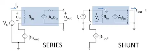 Feedback amplifier type Input connection Output connection Ideal feedback Two-port feedback