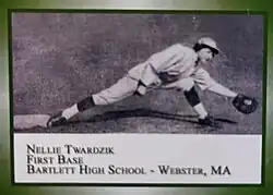 Aniela "Nellie" Twardzik Thompson (May 22, 1919 – March 8, 2013), at the age of 15, was the first girl to start on a high school boy's varsity baseball team in 1935. A Dudley, Massachusetts native, she played first base at Bartlett High School[1] for three years until her graduation in 1937.