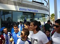 In August 2010, Valdez signed a three-year contract with Hércules after admitting that he had received offers to play in Russia. Valdez became the most expensive signing in the history of Hércules having been transferred for €3.5 million.[70] His debut resulted in a brace against Barcelona on 11 September in a surprising 2–0 victory at the Camp Nou.[71] Valdez scored his second double for Hércules in a 3–1 win against Levante on 29 November.[72] He would then score in a 4–1 against Atlético Madrid on 11 January 2011.[73] In January, when Valdez had scored six times in 11 appearances, it was reported that Real Madrid had considered signing him when Madrid striker Gonzalo Higuaín was ruled out for the season following back surgery, however a transfer was never established.[74][75][76] He received a red card on 61 minutes in his second last game of the 2010–11 season in a 3–2 loss against Racing de Santander on 8 May.[77][78]