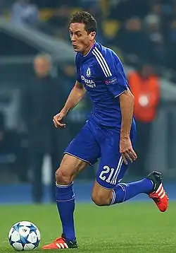 Matić scored his first Premier League goal on 30 August 2014, in a 6–3 win at Everton.[32] A month later, Matić scored the only goal as Chelsea won away at Sporting CP in the group stage of the Champions League;[33] on 5 November in the same competition, his goal earned Chelsea a 1–1 draw at Maribor.[34]