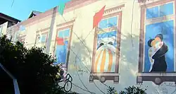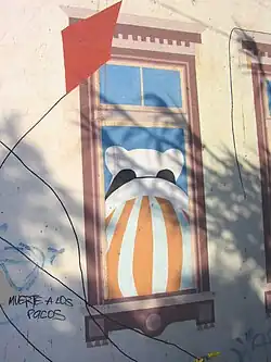 ![]() Bailarines con volantines (detail); mural nº16 of the es:Museo a Cielo Abierto de Valparaíso | |