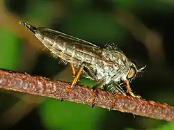 Adults can be found from May to September.[3] Larvae feed on beetle larvae of the families Cetoniidae, Lucanidae and Melolonthidae, while adults prey on other flies.[3]