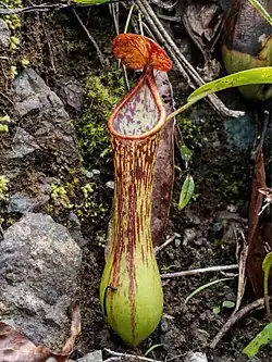 Nepenthes cornuta is a tropical pitcher plant native to the Philippines. It is known only from the Pantaron Mountain Range of central Mindanao, where it grows terrestrially on ultramafic soils at around 1000 m above sea level.[1]