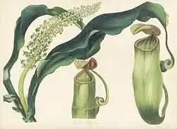 Nepenthes distillatoria was again described in 1683, this time by Swedish physician and naturalist Herman Niklas Grim.[14] Grim called it Planta mirabilis destillatoria, or the "miraculous distilling plant", and was the first to clearly illustrate a tropical pitcher plant.[15] Three years later, in 1686, English naturalist John Ray quoted Grim as saying:[10]