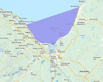 Nepisiguit Bay (from the Mi’kmaq word winpegijawik, which means "rough water")[1] is located in northern New Brunswick, Canada on the southern part of the Chaleur Bay (French: Baie des Chaleurs),[2][3] which extends from the Atlantic Ocean and Nepisiguit Bay is a southern arm of it, stretching between Petit-Rocher and Stonehaven.[4]