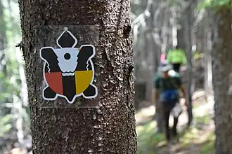 ![]() The distinctive turtle markers of the Sentier Nepisiguit Mi'gmaq Trail. | |