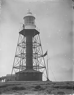 The need for a lighthouse in the Neptune Islands was considered for many years during the 19th century due to the islands' relatively low elevation.[24] In 1901, the light tower from the Port Adelaide Entrance light was relocated to South Neptune Island. That was eventually replaced by a small brick tower in 1985, and the old tower was transported to Port Adelaide on MV Cape Don to become part of the collection of the South Australian Maritime Museum, which opened in 1986.[25] The new lighthouse was converted to automatic operation in 1990 resulting in the departure of the lighthouse keepers and their families.[26]