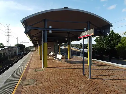 Nerang station opened on 16 December 1997 when the Gold Coast line was extended from Helensvale.[1] It served as the terminus until the line was extended in 1998 to Robina.
