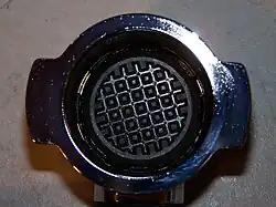 Nespresso's hermetically sealed capsules are made of aluminum.[15] Depending on the Nespresso system being used, the flat top or the pointed end of the capsule is pierced when inserted into the machine and the compartment lever is lowered. Some machines make a single large hole, and others make three smaller holes. When the machine is activated it pumps hot water under high pressure into injector holes poked into the narrow end of the capsule upon insertion. This causes the flat bottom of the capsule to rupture, as it is made of thinner foil than the rest of the capsule. The base of the capsule holder (on which the capsule sits) has a number of raised squares which cause the foil to rupture at these points. The brewed coffee exits the capsule through these rupture holes and flows through a funnel nozzle into the coffee cup. As in pressure cookers, a safety pressure release valve inside the brewing chamber prevents an explosion from occurring if the normal coffee exhaust path becomes blocked. This process produces a crema which is micro air bubbles that are mixed with the coffee's natural soluble oils.[16] The crema resembles a tan colored froth that floats at the top of the coffee.[17]