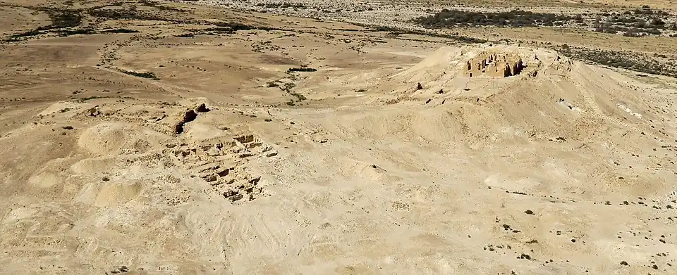 Nessana,[1] Modern Hebrew name Nizzana,[2] also spelled Nitzana (Hebrew: ניצנה), is an ancient Nabataean city located in the southwest Negev desert in Israel close to the Egyptian border. It started by being a caravan station on the ancient Incense Road, protecting a western branch of the road which allowed access to Egypt to the west via the Sinai, and to Beersheba, Hebron and Jerusalem to the northeast.[1] It was first used by Nabataean merchants, and later also by Christian pilgrims.[1]
