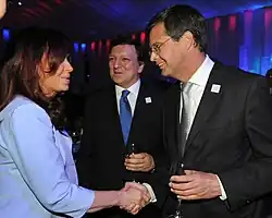 In February 2010, NATO had officially requested the Netherlands to extend its military involvement in Task Force Uruzgan, the ISAF operation in the Afghan province of Uruzgan, aimed at training Afghan security forces and transfer of responsibilities to the local authorities.[6][7][8] Coalition party PvdA strongly opposed the extension of the mission.[9][10][11] The collision between the government and the parliament, of which the majority disagreed with an extension of the mission, as well as between the coalition partners in the cabinet, threatened the existence of the cabinet[12] and led to its fall in the night between 19 and 20 February 2010, after 16 hours of deliberations between the cabinet members. The Labour members resigned from the cabinet.[13][14][15][16]