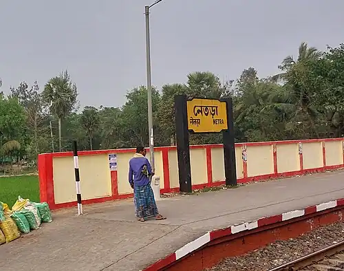 Netra railway station is a Kolkata Suburban Railway Station on the Diamond Harbour Branch line. It is under the jurisdiction of the Sealdah railway division in the Eastern Railway zone of the Indian Railways. Netra railway station is situated beside Usthi-Hatugunj Bypass at Nudia, Netra, South 24 Parganas district in the Indian state of West Bengal.[1][2]