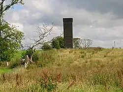 Davis sees the house as being an enlargement of a pre-existing house and attributes the style to lack of finance and amateurish design. The unusual gate-piers, one is taller than the other, still look onto the former groom's cottage.[6] Other buildings nearby were the homefarm and accommodation associated with the limekilns. The surviving ruin with the marriage stone may have been related to the quarry workings after the castle was demolished. It contains a concrete slab with steel rods for attaching a generator or such like.