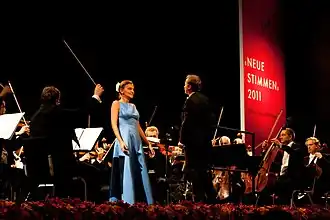 Neue Stimmen (New Voices) is an international singing competition.[1][2] It was established in 1987 on the initiative of Liz Mohn with the support of August Everding to promote opera's young talent.[3] It is considered an important forum for new talent,[4] one that has marked the beginning of international careers for many participants.[5][6] The singing competition was hosted every two years by the Bertelsmann Stiftung in Gütersloh,[7] most recently in June 2022.[8]