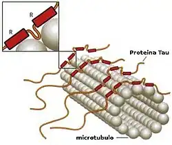 15. ^ Al-Bassam J, Ozer RS, Safer D, Halpain S, Milligan RA (June 2002). "MAP2 and tau bind longitudinally along the outer ridges of microtubule protofilaments". J. Cell Biol. 157 (7): 1187–96. doi:10.1083/jcb.200201048. PMC 2173547. PMID 12082079.