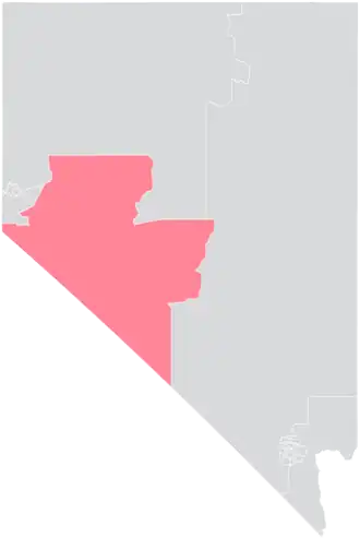 The district overlaps with Nevada's 2nd and 4th congressional districts, and with the 38th and 39th districts of the Nevada Assembly.[5] It borders the state of California.[1]