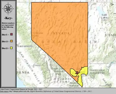 Table of United States congressional district boundary maps in the State of Nevada, presented chronologically.[3] All redistricting events that took place in Nevada between 1983 and 2013 are shown.