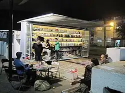 Located in Levinsky Park, the Garden Library consists of two open-air bookshelves (one for adults and one for children).[10] The library services the whole community, but was originally designed with the refugee and migrant population in mind. The library was established in 2009 by the non-governmental organization ARTEAM.[11] In addition to the free books, the library space also offers after school programs for children,[11] art classes and workshops, and language lessons[10] The library offers approximately 3,500 books in 16 different languages.[11] It is located at 98 Lewinsky St. (corner of Lewinsky & Har Zion).[12] The bookshelves are illuminated for easier browsing at night.[10]