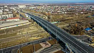 In 2019 in Nevinnomyssk a new overpass was built, the length of the bridge is 1.1 kilometers, and the entire interchange reaches 3 kilometers. The overpass has four lanes for vehicles and two sidewalks, and it crosses five railway tracks, the largest overpass in the Stavropol territory. The overpass was built across the Nevinnomyssk-Pyatigorsk and Nevinnomyssk-Moscow railway, in the area of Stepnaya and Revolyutsionnaya streets. The opening took place on December 27, 2019.