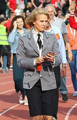 She has two master's degrees, one in physical education, and the other in "organization and management of operational and tactical formations of the Air Force", from a military academy. She is a lieutenant colonel working at the general staff office of the Bulgarian Army in Sofia.[2]