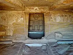 The Temple of Derr or el-Derr is a speos or rock-cut Egyptian temple, originally in Lower Nubia. It was built during the 19th Dynasty by Pharaoh Ramesses II.[6] It is the only rock-cut temple in Nubia, which was constructed by this pharaoh on the right (or east) bank of the Nile and used to stand at el-Derr.[7] The temple's unique position "was probably because the river on its approach to the Korosko bend flows in an 'unnatural' southeasterly direction."[8] The Derr structure was known in ancient times as 'The Temple of Ri'amsese-meryamun [Ramesses II] in the Domain of Re '[9] and was dedicated to the god Ra-Horakhty.[10] Scholars disagree over its precise construction date: the French Egyptologist Nicolas Grimal states that it was built in the thirtieth year of Ramesses II, presumably to coincide with his first royal jubilee.[11] John Baines and Jaromír Málek also write that the temple of Derr "was built in the second half of the king's reign", likely because its "plan and decoration resembles the Great Temple of Abu Simbel (minus the colossal seated statues against the facade)."[12] Abu Simbel was built between Year 24 and Year 31 of Ramesses' reign.[13] According to Joyce Tyldesley, the Temple of Derr was built by Setau, who is known to have served as Ramesses' Viceroy of Kush or Nubia between Year 38 to 63 of this pharaoh's reign.[14]