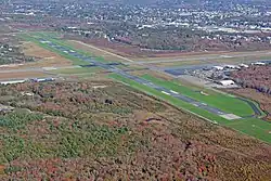 New Bedford Regional Airport was constructed between 1940 and 1942 as a commercial airport, but was soon drafted into use for the United States Army Air Forces until the end of World War II as New Bedford Army Air Field. In April 1944, the Navy took over control of the airport and used it as a training post and naval auxiliary air facility (NAAF New Bedford) to the Naval Air Station Quonset Point in Rhode Island.[3] During its time, the field also had control of Naval Outlying Landing Field Plymouth and Naval Outlying Landing Field Westfield.[4][5]