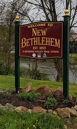 New Bethlehem is located along the southern border of Clarion County at 41°0′12″N 79°19′51″W / 41.00333°N 79.33083°W (41.003302, -79.330935).[6] It is in the valley of Redbank Creek, which separates the borough from South Bethlehem, Armstrong County to the south.