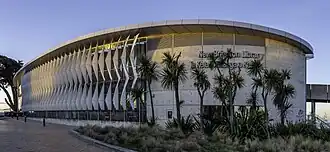A new 300 m (980 ft) long concrete pier was constructed and opened on 1 November 1997.[43] In 1999, a library and cafe building was erected at the pier's base. The building received awards from New Zealand Institute of Architects.[44] The pier was closed for earthquake repairs in 2016 and reopened again in May 2018.[45] It has become one of the icons of Christchurch.[46]