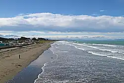 The naming of New Brighton was apparently done on the 'spur of the moment' by William Free,[4] an early settler of the area. When Guise Brittan, the Waste Lands Commissioner, visited the area in December 1860, he was recognised and Free chalked 'New Brighton' on a wooden plank, supposedly in reference to his fellow settler Stephen Brooker, who had come from Brighton in England.[5] The suburb is frequently referred to simply as Brighton, occasionally leading to confusion with Brighton near Dunedin.