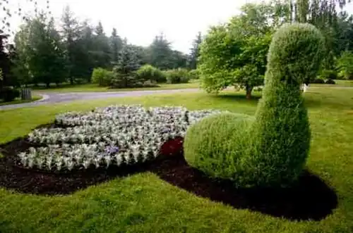The mosaiculture is a form of art which uses plants to accomplish drawings. The origin of mosaicultures traces back to the embroidery bed of 16th and 17th centuries. At the end of the 1860s, the term "mosaiculture" was used for the first time at the parc de la Tête d'Or in Lyon. In the beginning, gardeners created simple geometric forms but over the years, mosaiculture has become more complex and has come to include such three-dimensionsl shapes as butterflies, vases and birds. The gardens have several such examples on display. Today, several cities practice this art which is a tool of flowers development and horticultural expression.[2]