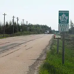 Route 16 is a two-lane highway in the Canadian province of New Brunswick. The 52 km (32 mi) route begins at Route 2 in Tantramar and ends at the midpoint of the Confederation Bridge, where it becomes Prince Edward Island Route 1.