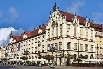 The New City Hall of Wrocław, Poland, is in the central block of the Wrocław Market Square.[1] It was built between 1860 and 1864 according to the design of Friedrich August Stüler. It is the seat of the mayor and City Council of Wrocław, and since 1992 its basement has housed the Spiż Brewpub.