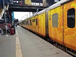 The station serves as the primary originating junction for the Rajdhani Express, Shatabdi Express,[29][30] Vande Bharat Express,[31] Amrit Bharat Express,[32][33] Mahaparinirvan Express Buddhist circuit train, several luxury tourist trains such as the Palace on Wheels, Royal Rajasthan on Wheels, and Maharajas' Express have itineraries that begin and conclude at New Delhi Railway Station. [34]