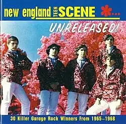 New England Teen Scene: Unreleased! 1965–1968 is a compilation album, which features previously unreleased material by American garage rock bands from the New England region. The album was released in 1996, and is the third and final compilation issued on Arf! Arf! Records related to the New England garage scene. The featured artists on New England Teen Scene: Unreleased 1965–1968 were sorted after 15 years of research to uncover their obscured recordings.[1] For the most part, the bands never had the opportunity to release any official material, with five of the tracks being completely uncredited, having been discovered in undocumented tapes. Perhaps the most prominent group on the album is Underground Cinema, the pre-band that manifested into the psychedelic rock band Ultimate Spinach.[2] Speaking on the album, music historian Richie Unterberger wrote "New England bands in general seemed to favor melodic pop and Zombie-ish keyboards more than groups from other regions, and that's reflected in many of the selections on the disc".[3]