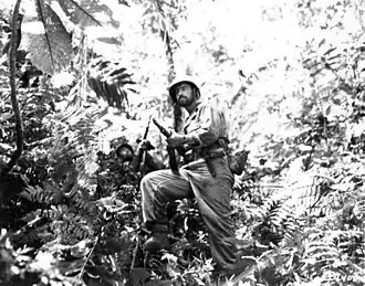 ![]() Men of the United States 25th Infantry Division push through the jungle along the Zieta Trail on 12 August 1943 | |||||||