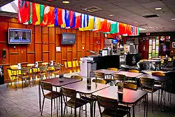 Former Republican candidate Sam Brownback's visit attracted the negative attention of the national media as the image of Brownback at the podium speaking to a mostly empty room epitomized his failing candidacy.[37][38] In 1972, the eventual Democratic nominee for United States presidential election George McGovern visited the college and after his speech jokingly declared he would become a vice presidential candidate, as he was clearly the front runner.[39]