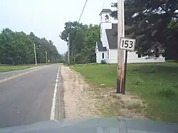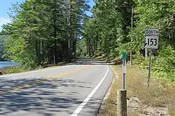 Between the towns of Wakefield and Effingham, NH 153 crosses into Maine, running for 1.9 miles (3.1 km) within the town of Parsonsfield. The Maine Department of Transportation has installed Maine-style route shields along this section of the road, but the highway retains its New Hampshire designation. NH 153 is unrelated to Maine State Route 153, which is located over 150 miles (240 km) to the northeast.