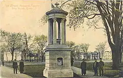 In the lower Green are the Bennett Fountain (built in 1907 and designed after the Choragic Monument of Lysicrates in Athens) and the flagpole with granite World War I memorial (designed by Douglas Orr in 1928) and fountain (added in 2003).[19]