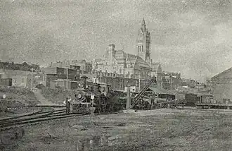 ![]() A train at Holyoke, Massachusetts, in the 1890s. This portion of the line is now operated by the Pioneer Valley Railroad. | |