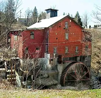The grist mill was partly built in 1823 by Judge Charles Kellogg – a member of the New York State Assembly and later a United States Congressman[2] – then sold to Horace Rounds in 1851. Rounds sold it to his son, Eugene Rounds, in 1865. In 1919 it was sold to W. E. Rounds and A. Ryan,[3] and it remained in the Rounds family until 1947, when it was sold to Howard Weed, Hubert Latta, and Leland Weed and renamed the New Hope Mills. Dale Weed became the sole owner in 2001.[2]