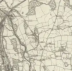 By 1902 an Ordnance Survey county edition series map shows the village split into three distinct areas - Upper, Middle and Lower New Inn. Upper New Inn corresponds to the centre of the village as it is today; Middle New Inn is centred on Berry's Corner and Lower New Inn is positioned where the current Lower New Inn public house is situated. A number of other areas are also detailed including a small holding called Jerusalem which today gives its name to Jerusalem Lane (which was then the unitary district boundary). Of interest on this map is a wood opposite the School called "Black Plantation" that still exists today. A chapel is also recorded in Lower New Inn (now the Congregation Chapel). By 1910 the village's population was around 800.