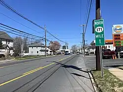Route 171 is a state highway in New Jersey, United States. It runs just under one mile (1.6 km) as an extension of U.S. Route 130 (US 130) past its northern terminus at US 1 in North Brunswick Township. The state highway ends along Georges Road near the border of North Brunswick Township and the city of New Brunswick. The route formerly extended into downtown New Brunswick ending at an intersection with Route 27, though the route was mostly unsigned inside New Brunswick. The route is a major thoroughfare in North Brunswick. The route originated as an alignment of pre-1927 Route 1 and later of US 130. After US 130 was truncated, the alignment, which had also been designated Route 25M, was later re-designated as Route 171.