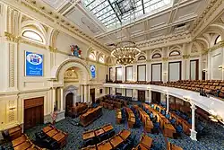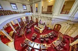 Next to the State House and connected via an interior pedestrian tunnel, the State House Annex was built between 1927 and 1931. It originally housed the New Jersey State Library, the New Jersey State Museum, and the New Jersey Supreme Court. Today, the Annex is used for legislative offices and committee meetings.[4][5][6][7][8]