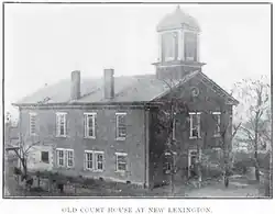 New Lexington was severely damaged by a fire in February 1874, which originated in a drug store around midnight. The flames quickly spread to the second floor of the drug store, and then inflamed several more buildings, before igniting an entire block of structures. Townspeople hurried to tear down a one-story building by a wide alleyway, preventing the flames from catching a further row of houses and stopping the spread. After that point, the damage was more limited and no more buildings were lost. In the end, total damages from the fire were estimated at $50,000.[7]