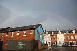 The New Lodge (Irish: An Lóiste Nua) is an urban, working class Catholic community in Belfast, Northern Ireland, immediately to the north of the city centre. The landscape is dominated by several large tower blocks. The area has a number of murals, mostly sited along the New Lodge Road. The locality is demarcated by Duncairn Gardens, Antrim Road, Clifton Street, and dependent on opinion, York Street or North Queen Street. North Queen Street and Duncairn Gardens have often seen rioting between republicans and loyalists. The New Lodge is also an electoral ward of Belfast City Council.