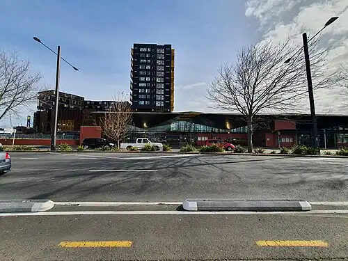 New Lynn railway station is on the Western Line of the Auckland railway network, New Zealand, and is part of an integrated transport centre where transfers can be made to and from bus services. A redeveloped station in a new rail trench was opened on 25 September 2010.[3] LynnMall, a major shopping mall, is close by.